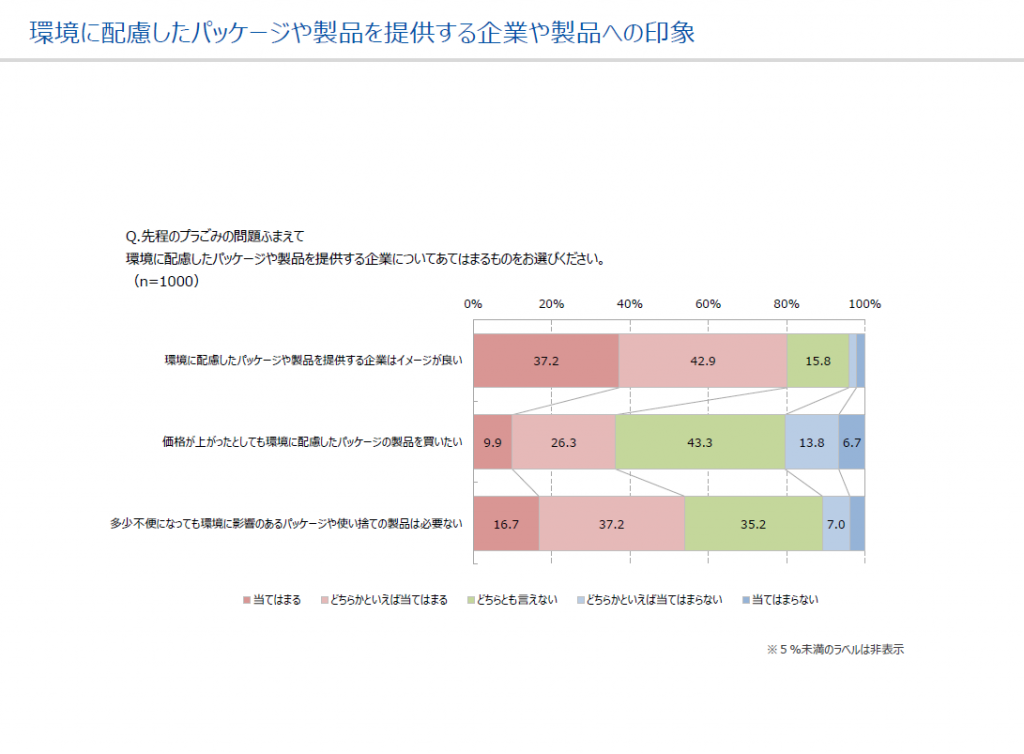 そして、多少不便になっても環境に影響のあるパッケージや製品は必要ないと回答した人は53.9%と否定的な42.2%を若干上回る結果でした。