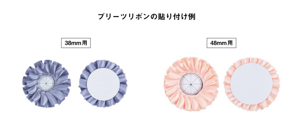 これはプリーツリボンを留める位置を案内するものであるため、ロゼットに適度な硬さを与え裏面を飾る『ロゼット裏紙(厚紙)』も併せてご利用いただく事をお勧めしておりました。