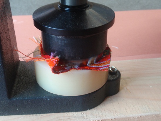 金型に布とシェルをセットし、ウッドストックで押し込みます。
