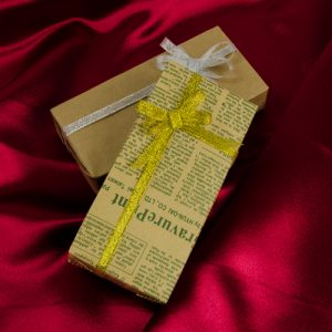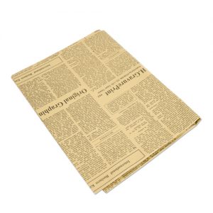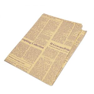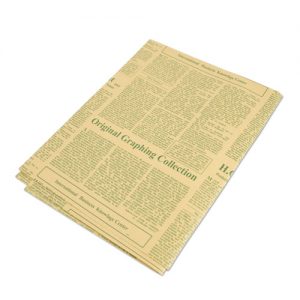ニュースペーパー風のデザインが印刷されたおしゃれな包装紙です。